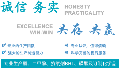 專業(yè)生產(chǎn)對(duì),苯磺酸,苯酚磺酸等磺酸類產(chǎn)品及抗氧劑的生產(chǎn):如抗氧劑300,抗氧劑BHT等;酚類產(chǎn)品有間苯二酚、鄰甲酚及間甲酚等